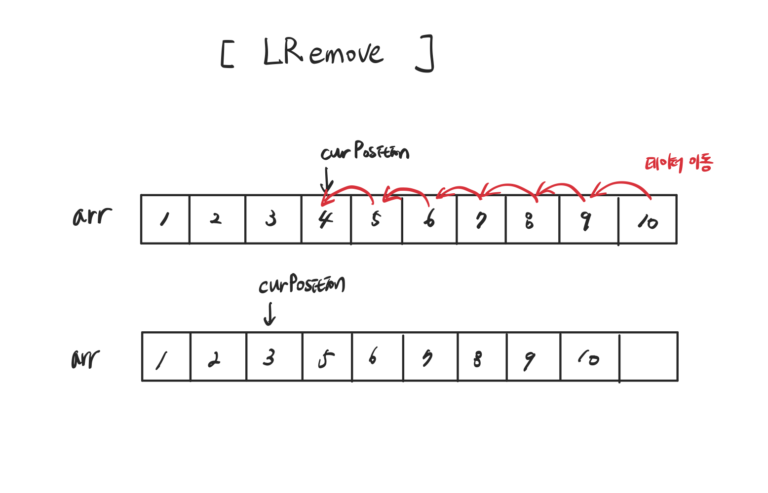 - 삭제된 이후 뒤의 데이터를 앞으로 한 칸씩 당김 (shift)